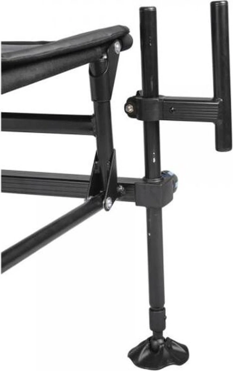 De grote modderpoten zijn ieder traploos te verstellen waardoor je dankzij de ingebouwde waterpas de stoel op iedere ondergrond kaarsrecht kunt plaatsen. De schroefkoppen zijn vernieuwd en voorzien van een rubberen kop voor een optimale grip.