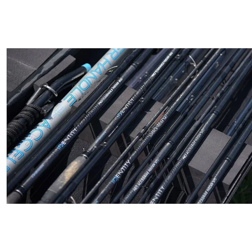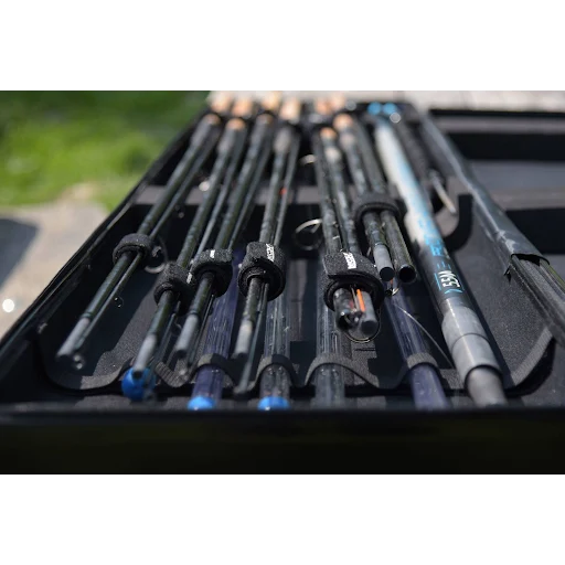 Zowel de bodem als het deksel zijn voorzien van 2 EVA strips, waartussen de hengels gefixeerd worden en ze dus ook rechtop staand in positie blijven.