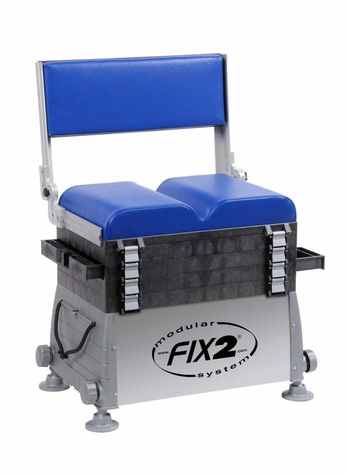 Reeds jaren de top onder de klassiekers. De grootste zitmand van het FIX2-450 type combineert een moderne uitstraling met groot comfort en gebruiksvriendelijkheid in een compact systeem. Ideale oplossing wanneer plaatsgebrek in de auto het niet mogelijk maakt om een groot visstation te transporteren. Het vernieuwende Concept Box ontwerp bestaat uit een onderbouw met een zilverkleurig gelamineerd aluminium plaat en slagvaste zijwanden met uitschuifbare voetjes (moddervoeten) om op elke ondergrond stabiliteit te verzekeren. De bovenbouw is uitgerust met 1 bakje en 2 zijlades (links/rechts combineerbaar). Het blauwe pole kussen, gemaakt van een hoogwaardige vulling voor verhoogd zitcomfort en de onderhoudsvriendelijke bekleding, zorgen voor de perfecte afwerking. De rugleuning zorgt voor maximaal comfort langs de waterkant en kan worden dichtgeklapt of gedemonteerd. Een verstelbare 3-punts draagriem met FIX2 -schouderstuk en 2 aasbakken in de onderbouw behoren tot de standaard uitrusting. Afmeting bakjes: 450x290x35 mm. Ook verkrijgbaar zonder rugleuning
