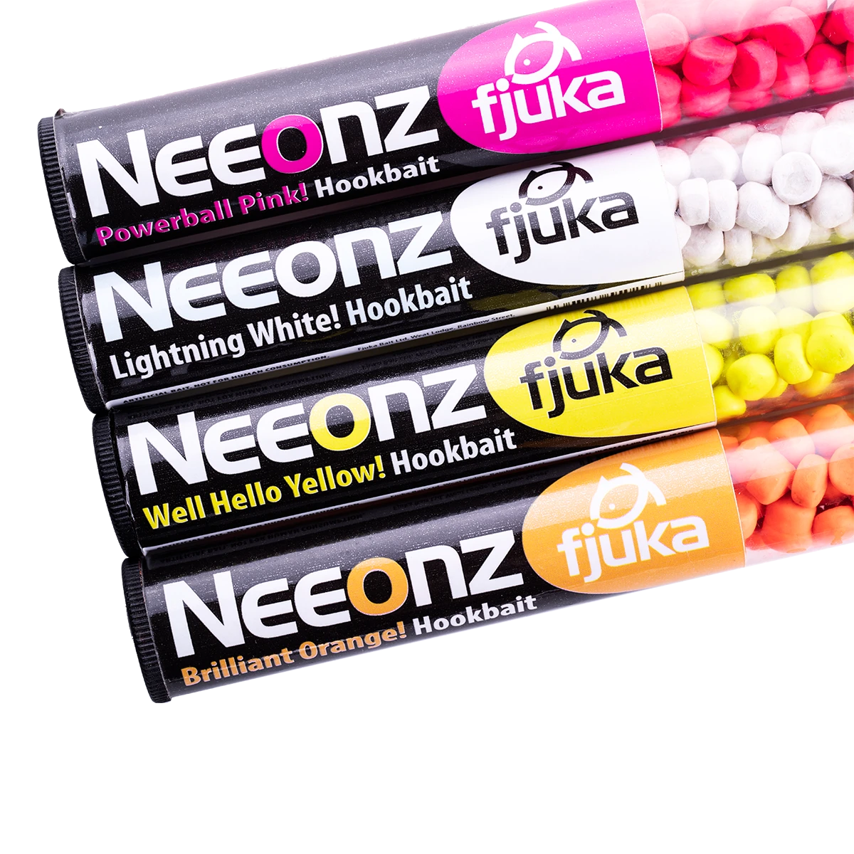 Fjuka Neeonz fluoro hookbait haakt direct. Geen boren, spikes, banden of andere voorbereidingen; je bent klaar om te vissen op het moment dat je de oever raakt. Elk van de Fjuka Neeonz hyper-flouro, neon-verzadigde kleuren geven een uitstekende zichtbaarheid onder water om de aandacht te trekken van je doelsoorten op meren, rivieren en kanalen. Fjuka Neeonz zijn verzadigd met Sensate™ gemicroniseerde lokstoffen die 3000 X de beschikbare smaak en aroma’s bieden van gewone lokstoffen. Alle Fjuka Bait kan worden gekneed om maden, maïs of wormen te imiteren, of worden gecombineerd om groter, helderder aas te produceren en grotere soorten aan te trekken. Fjuka Neeonz zijn onweerstaanbaar voor zeelten en exemplaren zoals karper, brasem, vlagzalm, rietvoorn, zeelt, forel, F1’s & crucians. Zonder tijdrovende voorbereiding plus de vangkracht van hyper-flouro en Sensate™ Micronised Attractants – pak gewoon een tube en ga vissen.