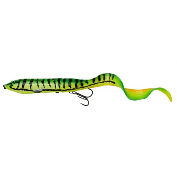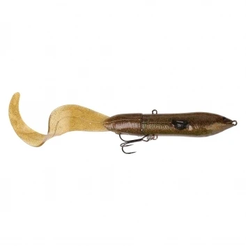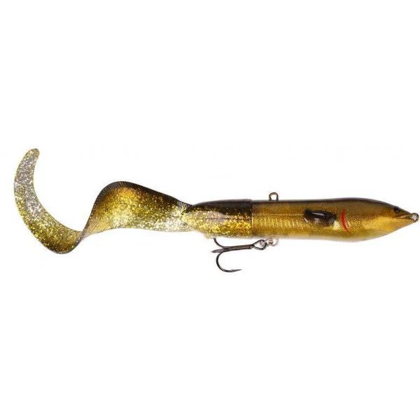 De 3D Hard Eel 2+1 van Savage Gear is een unieke, veelzijdige jerkbait. Deze jerkbait imiteert op zeer realistische wijze een paling en is daarom geschikt voor het vissen op elke roofvis die van nature op paling aast. De jerkbait is erg effectief te vissen door hem simpelweg binnen te draaien en hem af en toe een tikje te geven en hem stil te laten hangen. De jerkbait wordt gekenmerkt door zijn lange, bewegelijke staart die zorgt voor een geweldige actie onderwater. Wanneer de staart is bevestigd met de staartpunt naar beneden zal de jerkbait net onder het wateroppervlak bewegen, wanneer de staart is bevestigd met de staartpunt naar boven zal de jerkbait rechtstreeks naar het wateroppervlak gaan. Daarnaast is deze jerkbait voorzien van een ratel om hem nog attractiever te maken. Zeer gedetailleerd afgewerkt en voorzien van een sterke, scherpe dreg. Wordt geleverd met een extra staart!