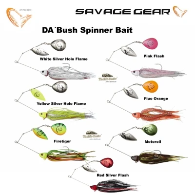 De Savage Gear Da’Bush Spinnerbaits zullen iedere roofvisser aanspreken door de hoge kwalitiet en afwerking. Door de combinatie van siliconen skirts en luxe tinsel ontstaat er, in combinatie met de dubbele spinnerbladen, een enorme pulserende werking onder water. Dit heeft zo’n aantrekkingskracht op grote snoek dat deze agressief en met volle kracht de Savage Gear Da’Bush Spinnerbaits zullen aanvallen.